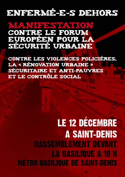 Du 12 au 14 décembre prochain se tiendra à Saint-Denis le Forum Européen sur la Sécurité Urbaine. Ce think tank d’institutions et de collectivités européennes sévit depuis 20 ans et regroupe élu.e.s et expert.e.s du monde entier pour partager les expériences et les innovations en matière de sécurité et de contrôle des populations sur les territoires, uniformisant ainsi les pratiques policières à l’échelle internationale.