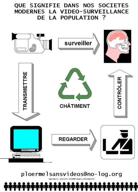 Le maire de Ploërmel rappel lors des discutions du CM sur cette curieuse extension de la vidéo-surveillance, que son « premier devoir de maire est de s’assurer que les enfants sont en sécurité absolue, qu’il n’y ait pas de dérive, que les parents sont rassurés... ». Il reprend le discours politique mièvre actuel qui magnifie le terme de « sécurité » en proclamant qu’il s’agit de la première des libertés publiques pour entretenir volontairement la confusion. Ce que les différentes déclarations des droits de l’homme consacrent tout d’abord c’est la sûreté, soit la garantie pour toute personne que le pouvoir de l’État ne s’exercera pas sur elle de manière arbitraire ; le droit à la sûreté devant être la première garantie des libertés individuelles. Il rappelle aussi que « ce qui compte, c’est la valeur morale ». Or la vidéo-surveillance repose sur la peur de la menace de détection et elle vise à la normalisation intériorisée des rapports entre dominants et dominés. La vidéo-surveillance des populations n’est donc qu’un rapport politique d’assujettissement qui est utilisé par les tenants d’un retour à un « ordre » symbolique comme moyen de gestion du champ social.